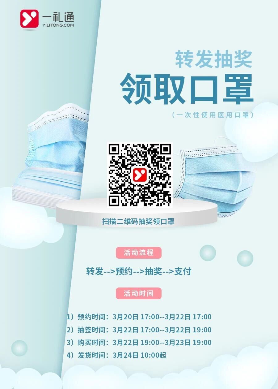 [導(dǎo)讀]:限時預(yù)約抽獎,周末來啦~一禮通口罩預(yù)約第二期活動也來啦!免預(yù)約!免排隊!免接待!"碼"上就能購口罩~