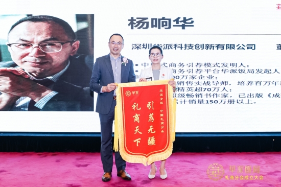 華派發(fā)起人楊響華博士對此次禮商分會給予了很高的評價,并為禮商分會創(chuàng)會會長劉平授旗,給禮商分會首屆領導團隊成員頒發(fā)任命牌匾。