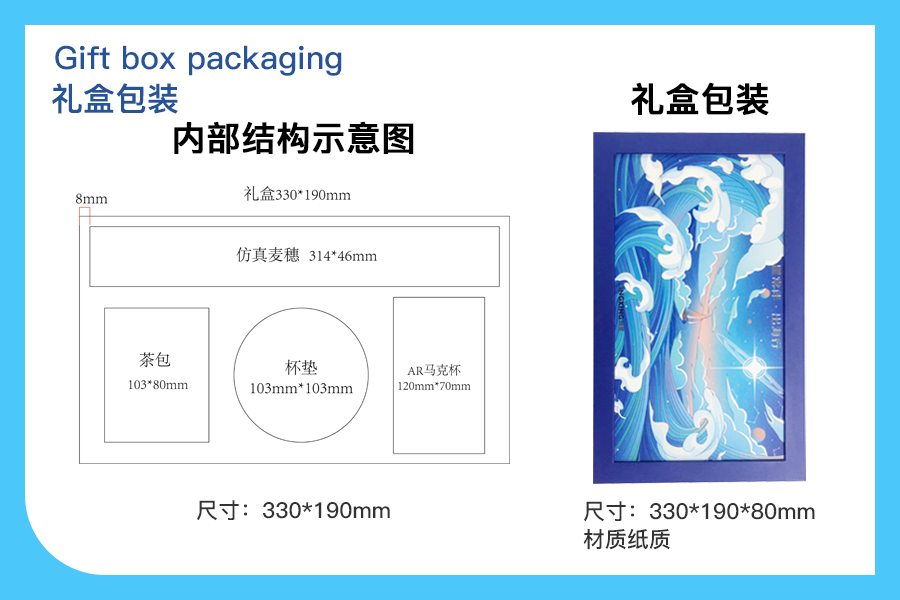 領(lǐng)星網(wǎng)絡(luò)禮盒伴手禮定制案例由茶禮、地球飛船AR馬克杯、黃金麥穗、杯墊等等禮品組合而成,非常適 合伴手禮。