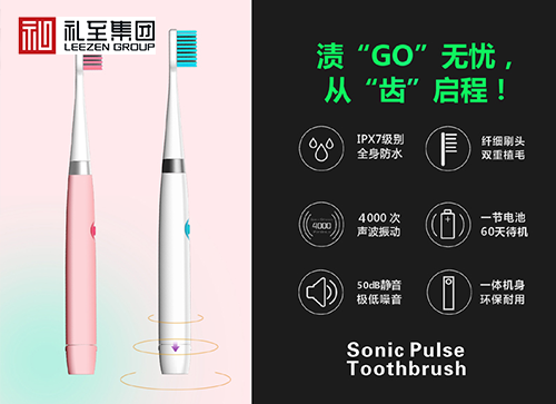 超聲波電動牙刷一節(jié)電池60天續(xù)航,采用食品級刷頭,IPX7級防水,全身水洗,無所畏懼。超聲波電動牙刷為亞洲口腔打造深入清潔難刷部位。超聲波電動牙刷是送給客戶高檔禮品的不二選擇.